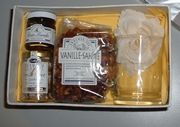 1x Teeglas 100g Vanille-Sahne-Tee 45g Vanille-Sahne- Zucker 50g Rum-Kandis im Geschenkkarton